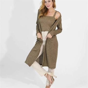 Cardigan confeccionado em crepe air flow texturizado. Possui abotoamento prático frontal e decote em V.