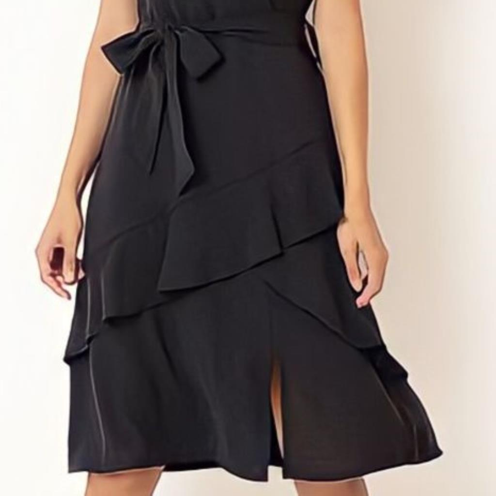 Vestido midi confeccionado em tecido air flow, tem um ótimo caimento. Possui babadinhos na parte debaixo, decote transpassado e passante na cintura. Contém forro.